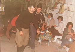 Above Right: My father, Mihail (left) dances with Ignatios Havopoulos. On the right are are sister, Katina Havopoulou and niece, Evridiki Havopoulou.