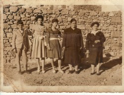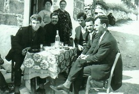 Above Right: Family and friends. L-R: myself, my father, Mihail, Stavros Parris, Ioannis Ploumis and Dimitrios Frangoulis. My sister, Kalliope, and mother, Eleni, are standing. The photograph was taken just before we went to visit the Filianou household for me to propose marriage to Mary Filianou.