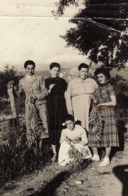 Above: Family and horianes. Standing are: Nikolitsa, myself, my mother, Maria, and Fotoula. In the front is my sister, Georgia.
