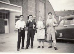 Above Right: Sydney. Working at a Pop Motorola, which manufactured televisions. L-R: Kostas Paterakis, my husband, Georgios, myself and Ioannis Kallis.