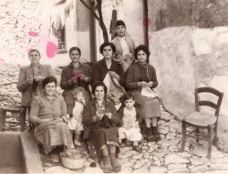 Above: My mother, Aspasia (Mersinio) with her neighbours. The back row are: Eleni (Gounela), Amalia (Manistrellis) and her daughter, Maria and Ioanna (Haralambou). Seated are: my mother, Aspasia (Mersinio) and Ioanna's mother, Maria (Haralambou). Standing is Katina ("Armenias"). The neighbourhood was called Kara.
