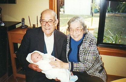 Above: With her great grandson, Evan, and her husband, Mihalis.