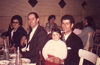 Above: With his cousin, Penelope Geragotellis, and Nikos Kakambouras-who is holding his daughter.