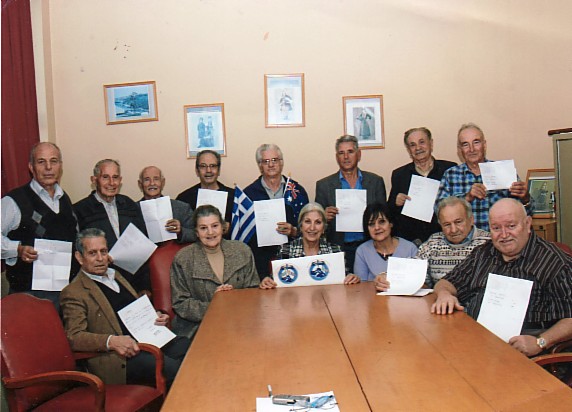 Above Right: As President of the Pan-Lesvian Federation of Australia and New Zealand, I organised a visit of ten elderly people to our island (2008). In this photograph, we are with the Prefect of Lesvos, Pavlos Vogiatzis, as well as the President of the Mytilenian Brotherhood of Perth and Western Australia, Evangelos Gavalas, and members of their Brotherhood's dancing group.