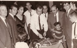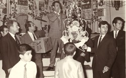 Above: At the Mytilenian Brotherhood of NSW's Social Dance at the Newtown Police Boys Club (1969). We are doing the raffle tickets for the night. I am with the microphone talking to our members and guests.